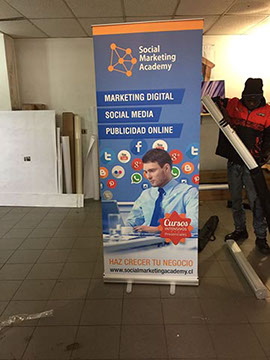 *Materialidad: Estructura de aluminio. La gráfica puede ser impresa en papel fotográfico termolaminado o en papel sintético o tela PVC. Impreso en alta resolución, suave deslizamiento de la gráfica.